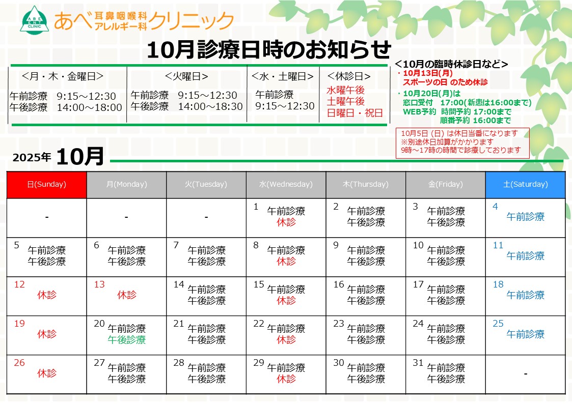 10月9日(木)、20日(木)の午前の診療は牧山祐希先生が担当いたします。