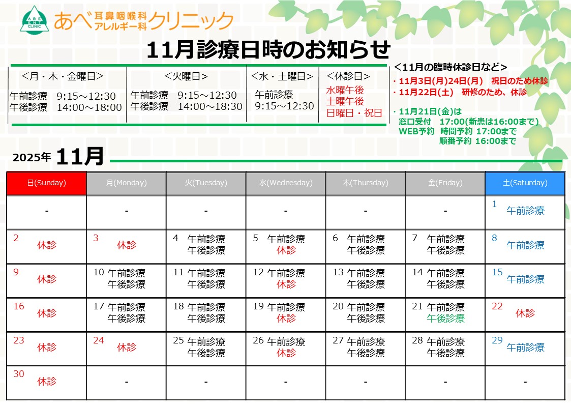 耳鼻咽喉科 アレルギー科 小児耳鼻咽喉科 特殊外来(めまい・睡眠時無呼吸・禁煙治療) 補聴器外来
